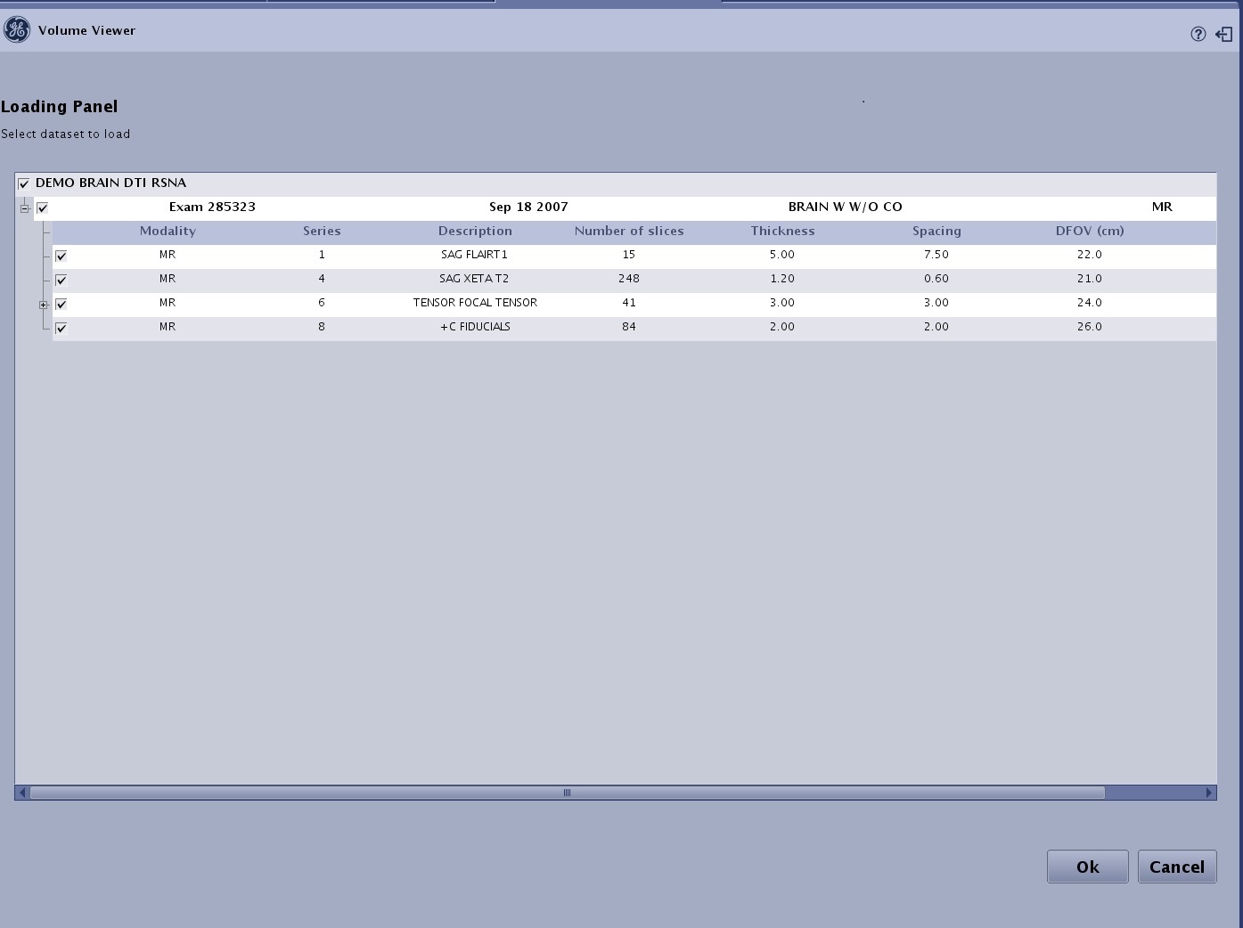 - From the Loading panel, select the desired series and click OK.
