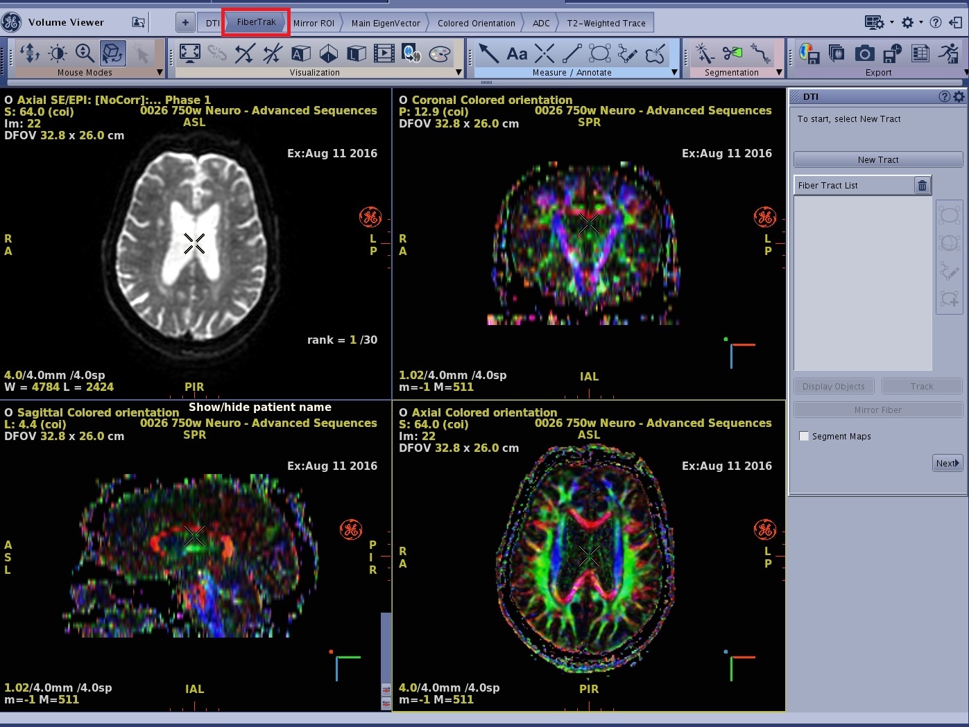 - To create the DTI FiberTrak view, follow these steps.