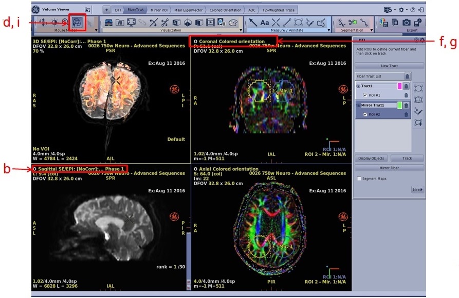 - Click one of the ROI icons from the DTI FiberTrak screen.