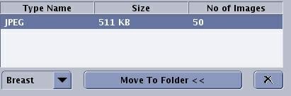 The Type Name list contains all of the file types within the selected folder. Keep in mind that the only items displayed in the list are the item types. If, for example, you added 20 T1 JPEG images to Folder 1 and then added another 20 T2 JPEG images to Folder 1, the number of JPEGs in folder 1 is 40. The quantity and size of each data type is listed. Figure 5. Type Name area