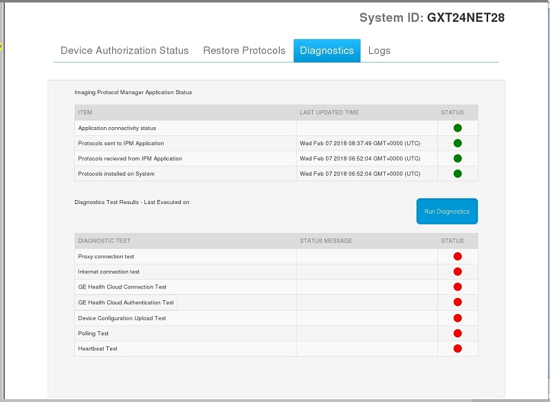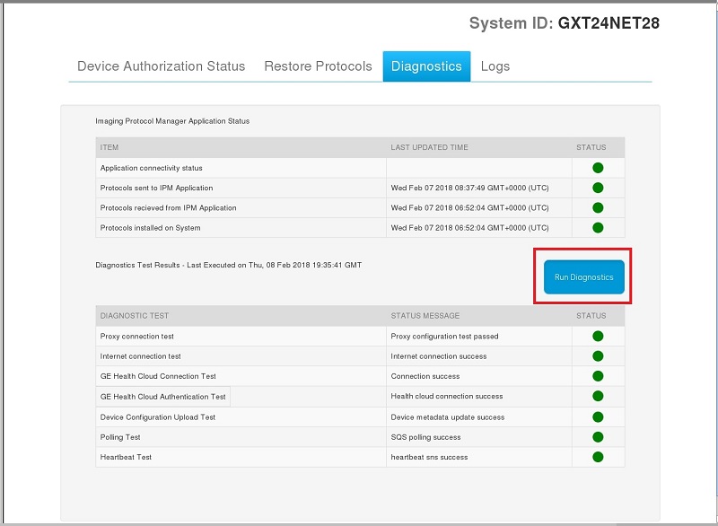 Figure 2. Diagnostics tab and Run Diagnostics button