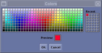 The menu only displays a set number of colors. If you prefer a color not displayed in the menu, click More Colors... Select a new color from the Colors window and click OK. The new color is added to the color pull-down menu. Figure 3. Colors window