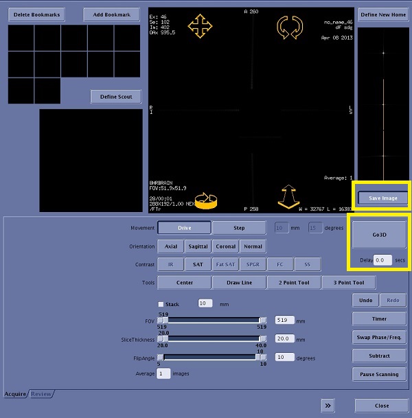 Clicking Go 3D initiates the quiet delay period. The count-down can be observed from the PC monitor or from the magnet cover.