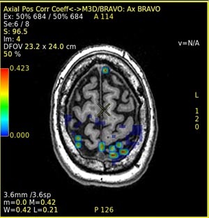 If the colored map does not show activation in the expected areas, or if colored plots show up at the periphery of the brain or even outside, then it means that the patient was not executing the paradigm properly, or the head was moving during the acquisition, or that there might be a discrepancy between the paradigm used during the acquisition and the one used for processing.
