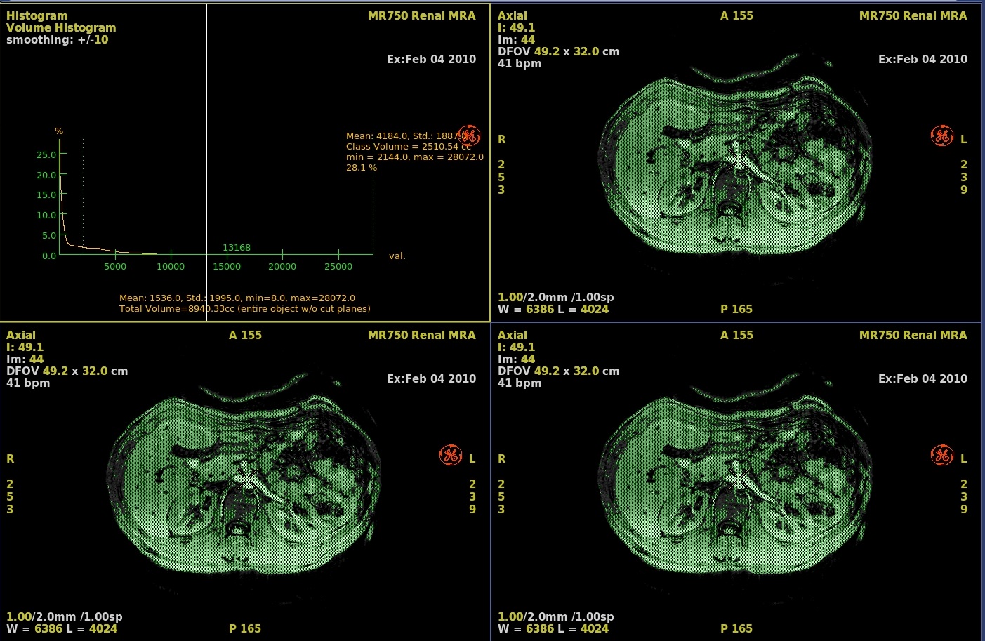 - Click the Active Volume Histogram and select Show Volume Histogram view, move the voxel reference line to select a class of voxels.