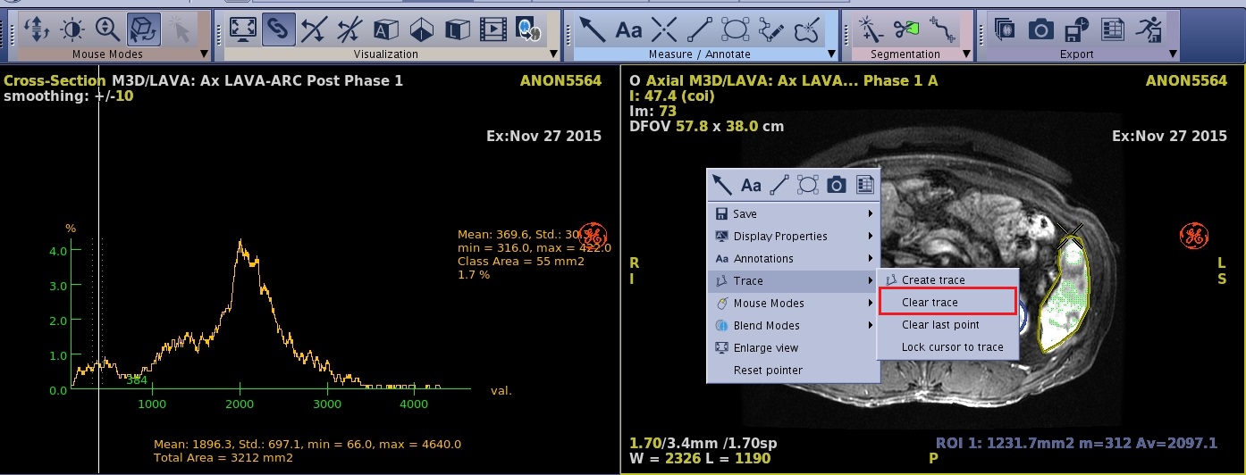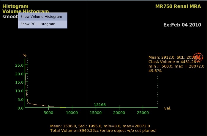 - Click the active Volume Histogram and select Show ROI Histogram.