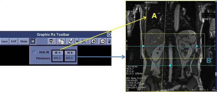 6. If desired, click IR A or IR B to toggle the IR SAT bands on/off to better visualize the slice locations.