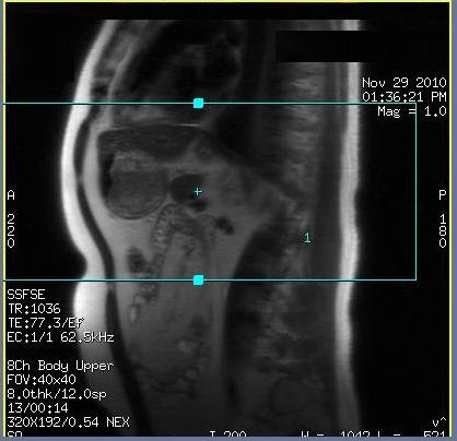 1. Position the patient with the hands raised above the patient's head. This position avoids fringe field artifacts and some water/fat swap.