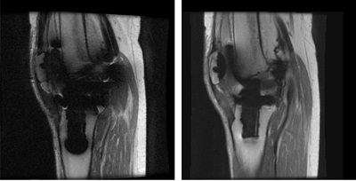 Figure 1. 1.5T Knee image acquired with 2D FSE on left and MAVRIC SL on right