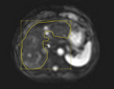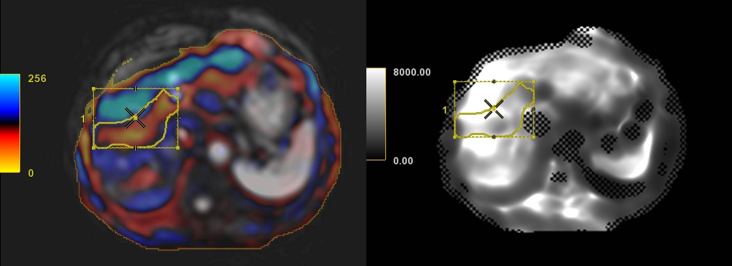 ). - From a mask image, draw an ROI in the non-masked area in the liver.