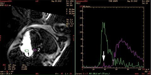 Real Time scans with the IR Prepared Imaging Option turned on can be used for detection of PFO. When the patient performs the valsalva maneuver, the blood flow shunt between the atria is elicited. If the realtime scan is acquired during the valsalva maneuver, the shunt can be imaged. IR-Prepared provides the necessary T1-weighted contrast. High temporal resolution is required with these scans because the shunt duration is typically less than one second. Achieve high temporal resolution by trading off high spatial resolution. A large FOV and slice thickness, small matrix values, and fractional NEX may be necessary to achieve the desired temporal resolution of four frames per second.