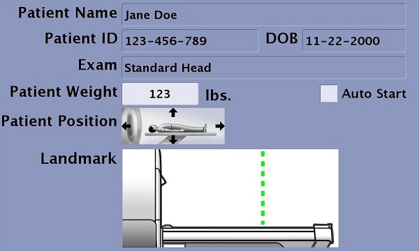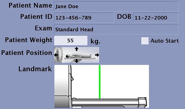If no landmark has been established, the in-room monitor does not display a green landmark line nor scan time.