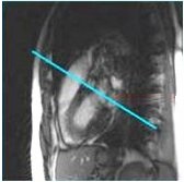 1. From an axial image, prescribe (blue line indicates graphic location) and acquire a right ventricular outflow tract view.