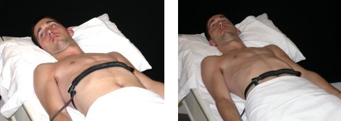 - If the patient is a very deep breather, place a stiff foam pad or several folded sheets over the patient's abdomen, adjacent to the costal margin.