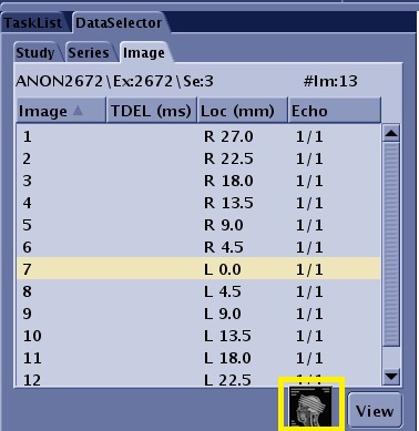 • The Localizer Viewer displays the localizers of the series currently displayed in the viewer, if available. If the currently displayed series has no localizer images, the Localizer Viewer displays a black screen with the message: “No localizers found.”