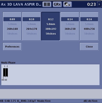 Use these steps for a quick scan parameter adjustment for breath hold body scans. Multiple optimized scan protocols are offered, which have different scan time, resolution.