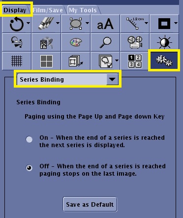 With Series Binding on, you can click Image + or press Page Down after the last slice in the series to display the first slice of the next series.