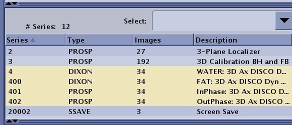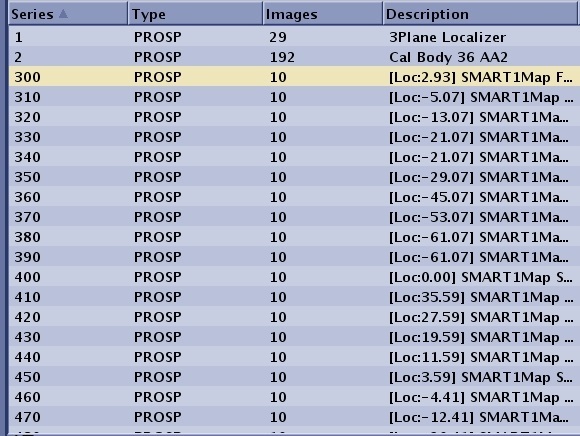 T1MappingN*100The number of series generated is equal to the number of scan locations. For example, series 3 has 10 slice locations, the system does not create a series 3 in the patient list, but instead creates series 300-390 with each series being 10 phases of one scan location.
