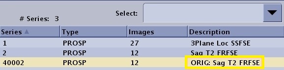 Figure 6. Example of a Patient list with a series generated due to Save Original option selected