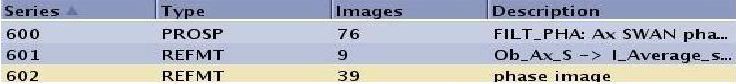 Series acquired with Phase Sensitive Imaging Option are stored in the Patient List as follows:
