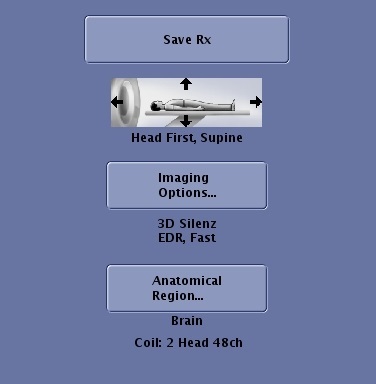 | Save Rx saves and downloads the active (yellow background) series in the Workflow Manager Task. Once you click Save Rx, you can click Scan to start the acquisition. |