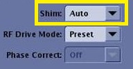 • Select Auto to allow smart Prescan to make the decision of whether or not to activate Shim during the prescan process based on if the pulse sequence requires it to optimize image quality. This is the typical selection.