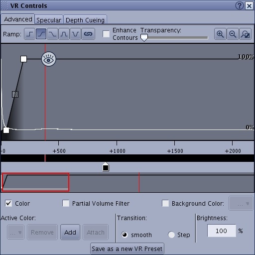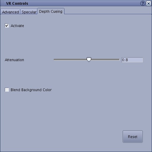 1. Adjust the Attenuation slider bar to modify the depth cueing appearance of the VR image.