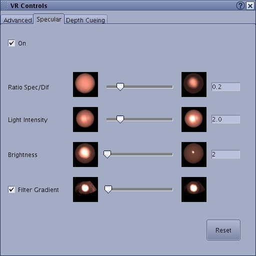 Figure 2. VR Controls screen, Specular tab