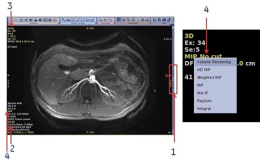 - Right-click the rendering active annotation and select an option from the available modes. In Figure 6 example, right-click MIP.