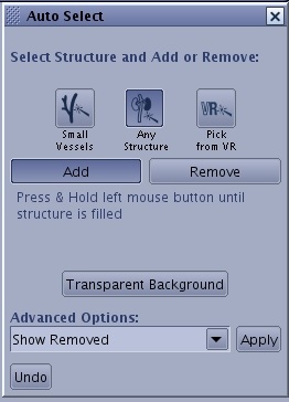 . - From the Auto Select screen, click the icon responding to the structure you want to segment and then click Add or Remove.